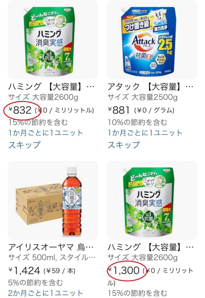 2回目以降の注文の価格は、お届け予定日の1~2週間前頃に確定します。なので、そのタイミングの価格が高ければそのまま請求されてしまいます。
