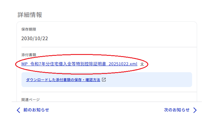- マイナポータルで令和〇年分住宅借入金等特別控除証明書のXMLファイルをダウンロードする。