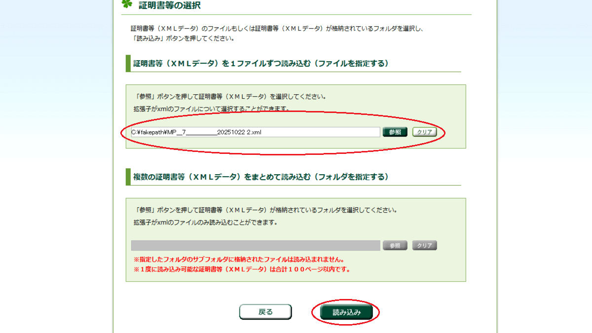 - 先ほどダウンロードしたXMLファイルを選択し「読み込み」をクリックして「次へ」
